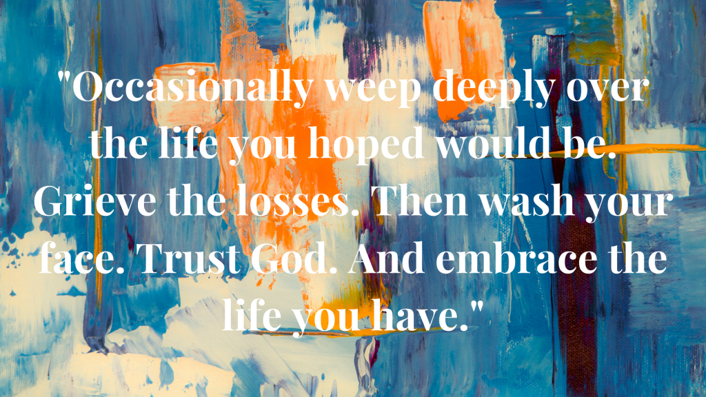 Where do you need to weep? What loss do you need to acknowledge? Promise me that you’ll grieve it fully. After the grief, don’t forget to embrace the life you have.
