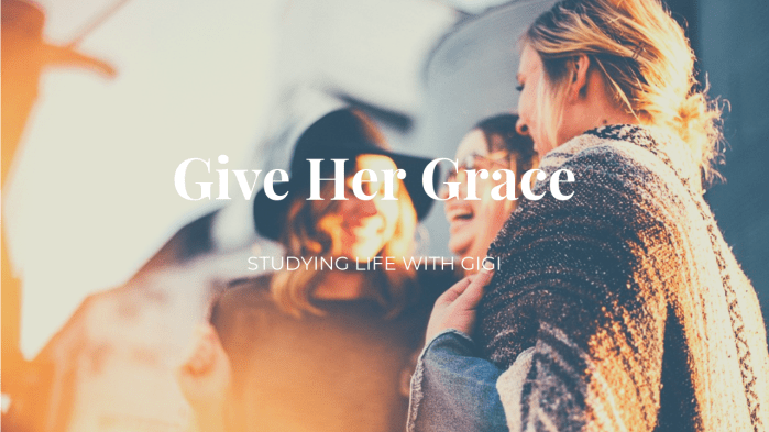 During this semester, I was struggling in my French class. I had just received a low grade on one of my exams, and I was feeling stressed. One of my dormmates consoled me and encouraged me. “It’s just one bad grade. You have so many other chances to improve,” she said. In my journal, I’ve … Continue reading Give Her Grace