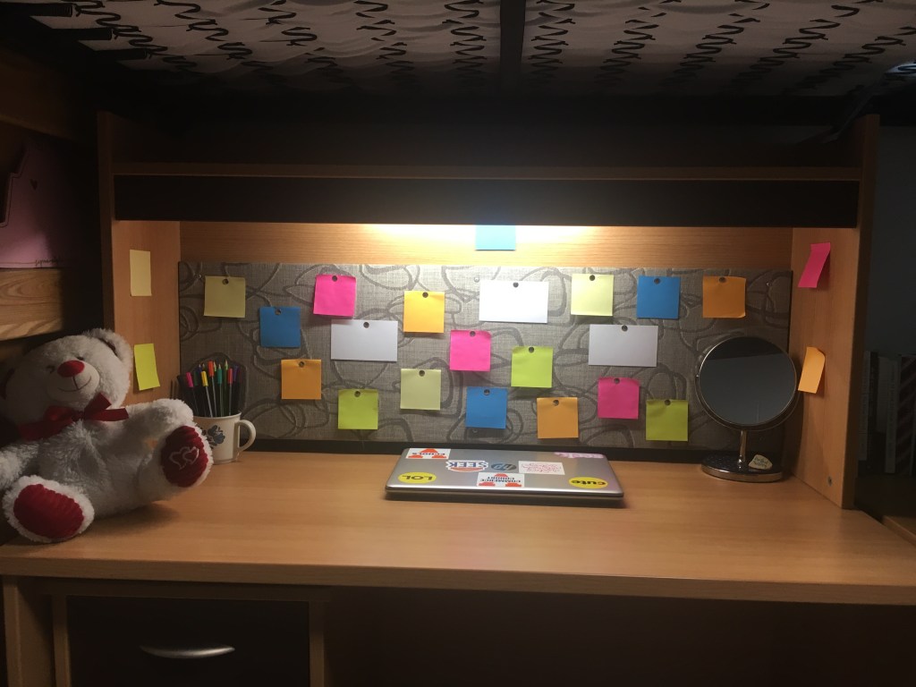 For my bulletin board last year, I did colorful sticky notes, and I wanted to do it again this year. I haven’t decorated the sticky notes yet, but there will be bible verses and quotes that I love from authors, etc. If you have any quotes you love, add them down below.