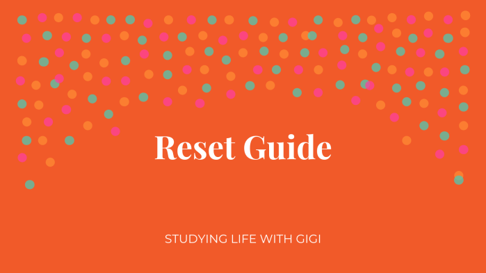 Every now and again, you need to reset. You need to start over. When you feel like you’ve been living life doing the same things over and over, when you feel stressed out and overwhelmed, when you feel like your brain is a mess, you need a reset. Oftentimes, we get busy and into a … Continue reading Reset Guide