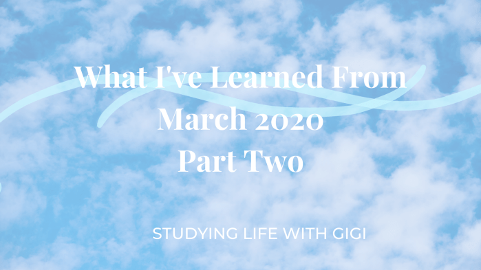 As promised, I have returned with part 2 of what I’ve learned from March 2020. More Lessons While this seems like the best time to be productive, give yourself grace. In this extra time found in the confines of our homes, we enter one of two tendencies - the sense to be uber productive or … Continue reading What I’ve Learned in March 2020 Part 2
