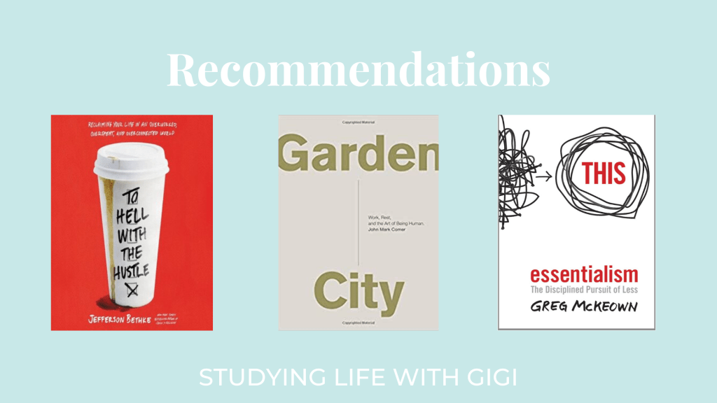 The books recommended are books that I have read that really get to different parts of being intentional about your life – with your actions and with your things. When you say yes to something, you are always saying no to something else.