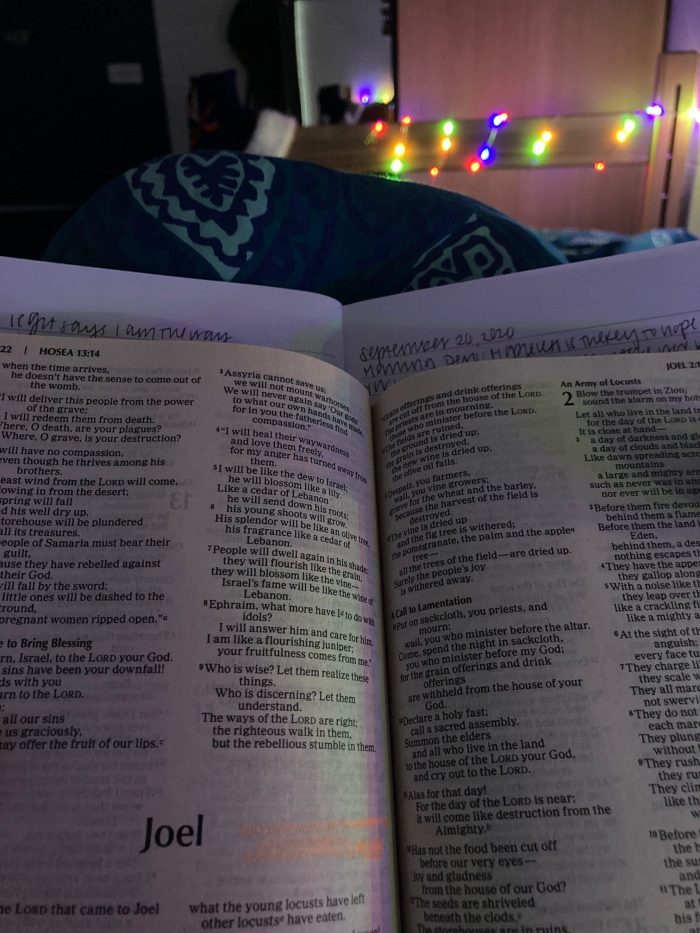 Haha, I genuinely love my quiet time because I just hop back into bed. Don’t do this if you KNOW you will fall back into bed. I hop back in because I’m usually cold in the morning. Yes, the fall weather is cold to me. There’s something wrong with my room for sure, though. Loose screws on the bed frame, the desk light that sometimes works, and the window that isn’t quite closed, plus no heat. Dorm life can kind of be a mess sometimes.