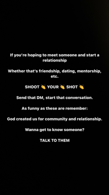 The amount of times I went to Cookout this semester is astonishing, but I am grateful for it. On Thursday, I was lucky enough to have someone share their testimony of this year with me. It’s the small encouragements that are building me up to be better.