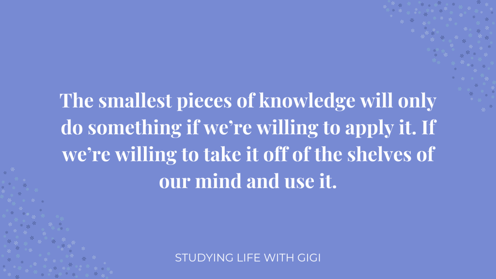 The smallest pieces of knowledge will only do something if we’re willing to apply it. If we’re willing to take it off of the shelves of our mind and use it.