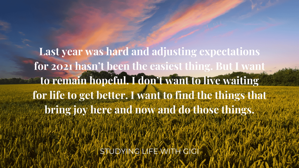 Last year was hard and adjusting expectations for 2021 hasn’t been the easiest thing. But I want to remain hopeful. I don’t want to live waiting for life to get better. I want to find the things that bring joy here and now and do those things. Because as time goes on, and politics come into play, and we continue to grind away, it’ll be up to us to do our best to not wish this time away.
