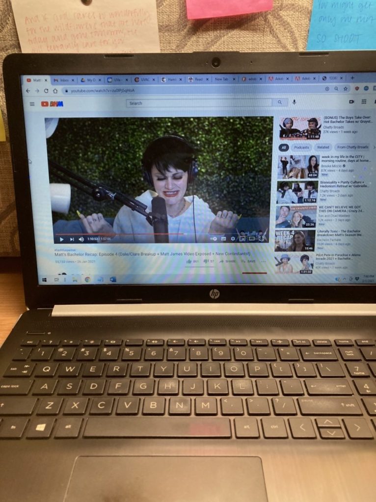 For a little break, I was catching up on Chatty Broads, a Bachelor recap show. It’s funny and sometimes controversial, but it’s like a girl chat with friends on my favorite reality show. (The only one I watch.)
