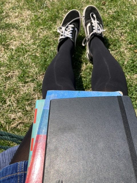 I spent some time outside in my Bible. I don’t usually do this. The weather isn’t usually this perfect. But this day, I just felt a pull outside. I just wanted to make the space bright and encouraging to dive into the Bible. That said, earlier in the semester, I would read my Bible in my bed. And that’s completely okay. Just spending intentional time in quiet – whether that’s prayer, meditation or reading is just good for the soul.