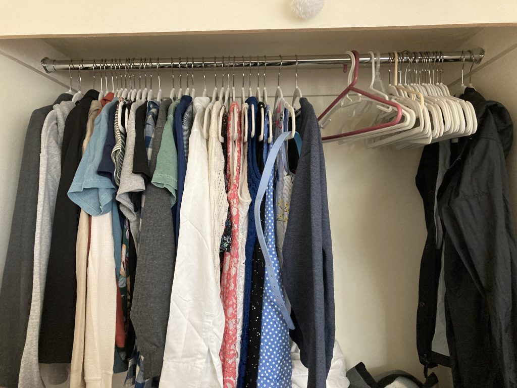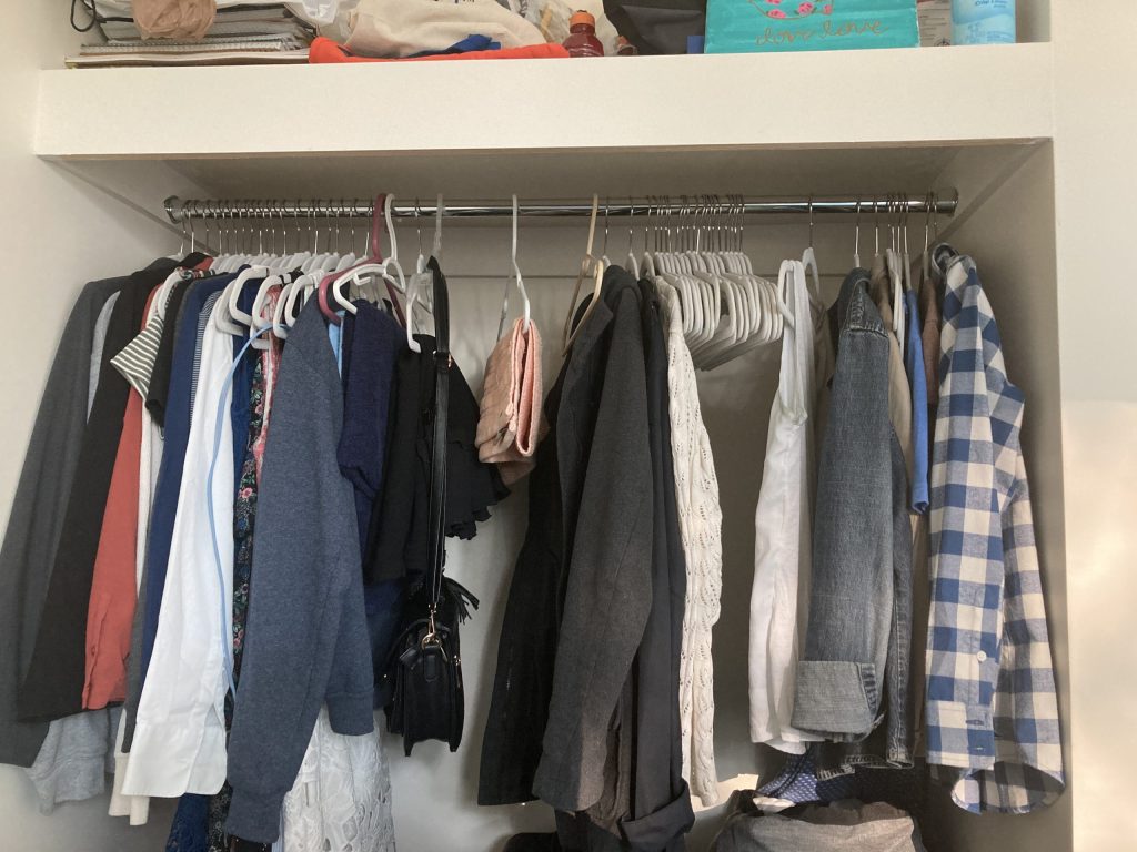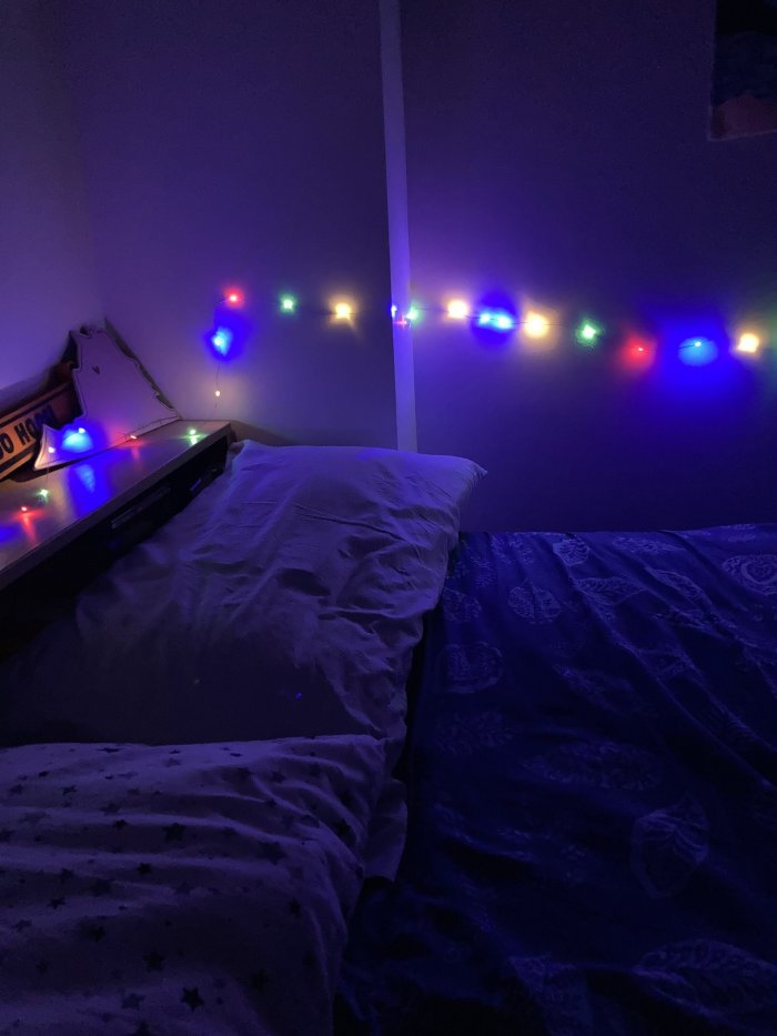 Unfortunately for me, my closet is open and messy. My clothes aren’t necessarily organized by color, although I’ve done that in previous years. The top of my closet is the sort of mess that is organized in my head but nobody else’s. Lastly, I wanted to put up twinkle lights to make this place cozy, but as I was trying to place them around my bed, they burned out. So I have no twinkle lights for you, but rest assured, I will update this post with twinkle lights soon. I promise!!!