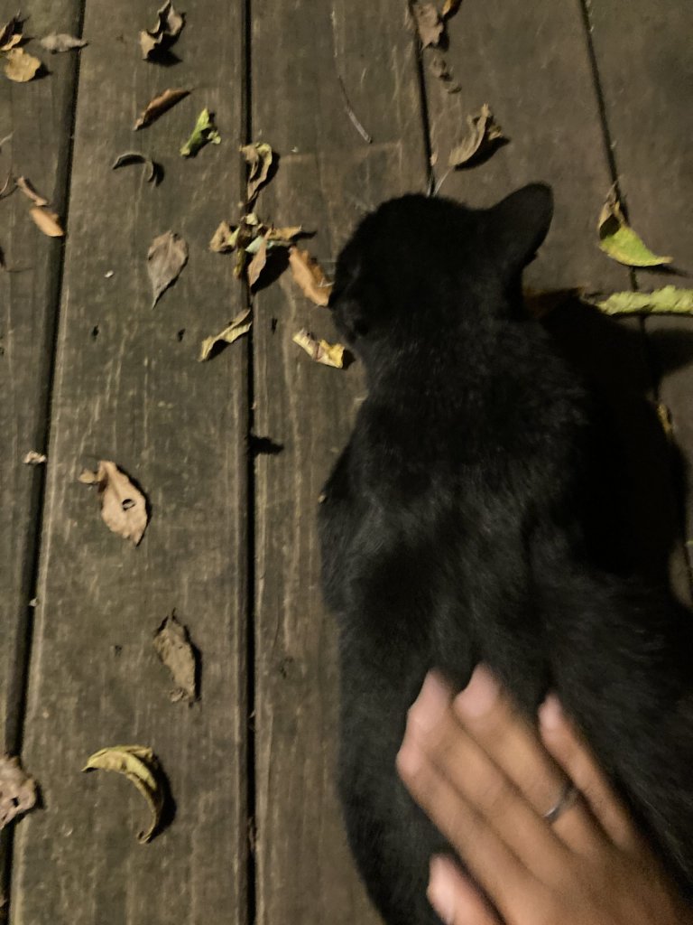 Thomas and I were the ones who were to make the fire and in reality, he did all the work. I just stood there and watched him work his magic. So around 8 pm, a tiny fire sprang to life and then I saw a different cat, whose name I believe is Teddy Bear, and started petting him. What can I say? I see a cat, I have to pet them! As the fire sprang up, we all got cozy and started sharing our life stories.