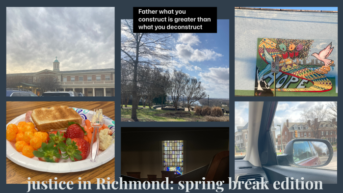 This past week was spring break! Considering that I went home the weekend before, I spent my week in Richmond! For spring break, I did a very similar justice program that I did in Charlottesville in 2020 (and we ALL know how that went). This week was A LOT better. A smaller crew of people, … Continue reading justice in Richmond: spring break edition