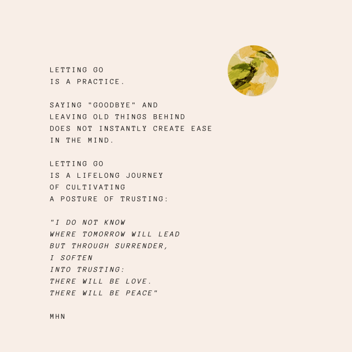 I tend to dwell on what is not (and what is no longer) for me. But there are bigger and better things coming, and when we believe that, we can relinquish what is not ours to hold and allow space to receive what is.