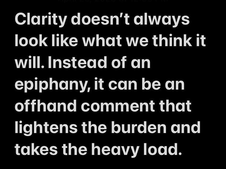 003. I wrote this thought on clarity about a decision I had and my dad had made a comment that made the decision a little bit easier for me. Hope you’re finding clarity for your life these days.