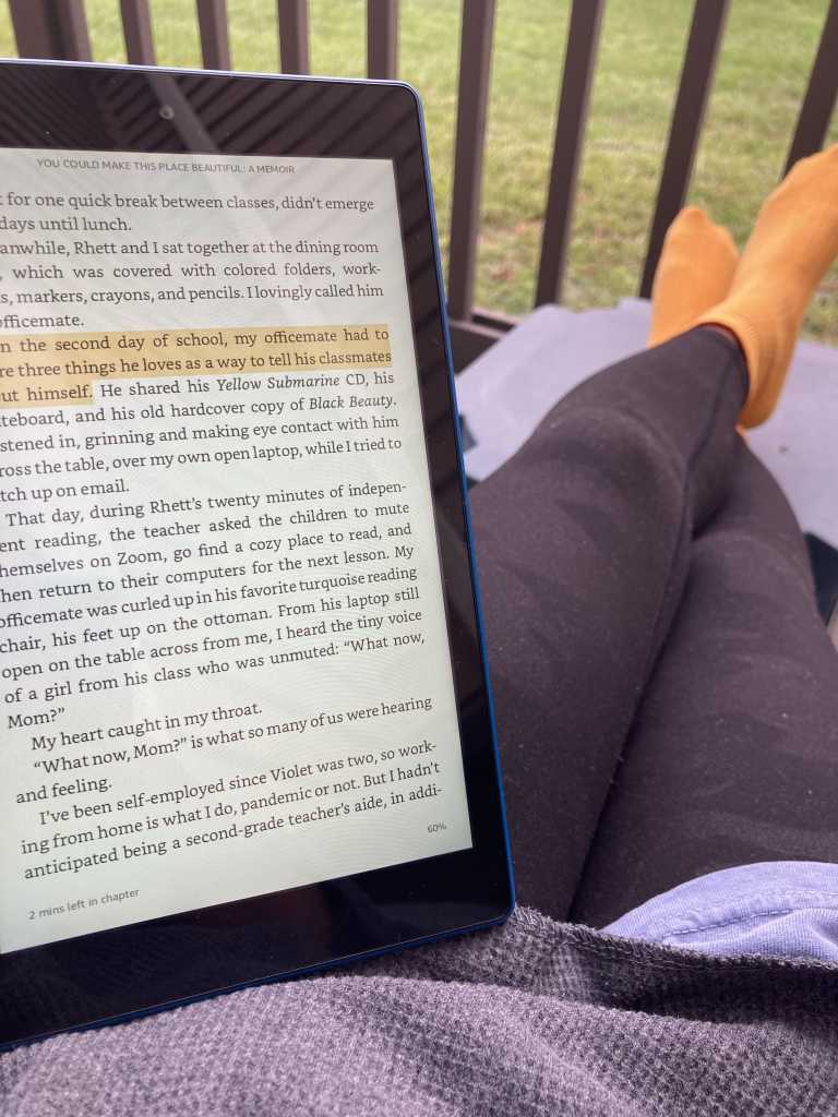 Those moments I would open the patio door and read for a bit. The most I got was probably two hours before one of my parents would be looking for me. I’d either be reading Matt Haig or You Could Make This Place Beautiful by Maggie Smith, and it was delightful (until the next interruption).
