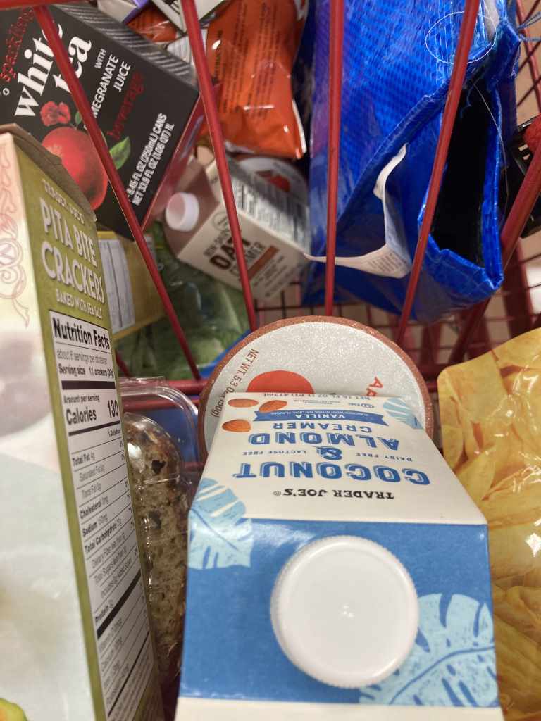 We got Starbucks, for me a pumpkin chai and her an iced apple macchiato. We hit up Goodwill, in which I only found one thing. A lovely green sweater. Then we drifted over to Trader Joes’. To pick up a bunch of things. I was hoping to acquire more fall things, but I didn’t get much (the one closest to me is busy every time I try to go).