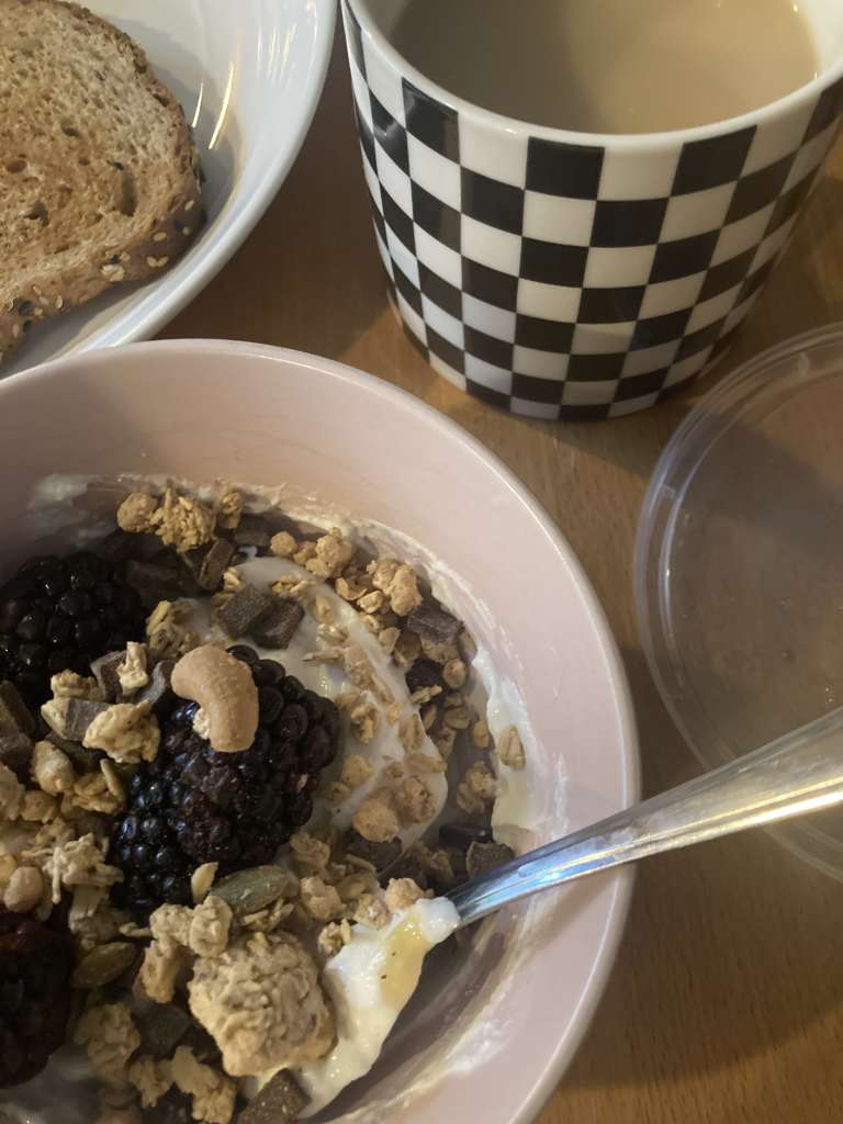 Church was at 10:30, but we were definitely a little late. But breakfast was nice. A granola bowl with toast and this cute checkered mug with Earl Grey.