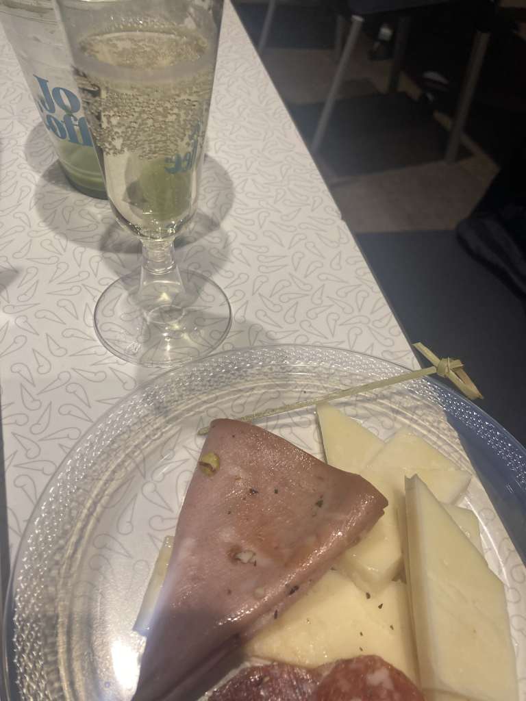 I continue grinding with my classmates around me chit-chatting away. A party across the hall ended and I got to enjoy some cheese, delicious salami, and some prosecco.