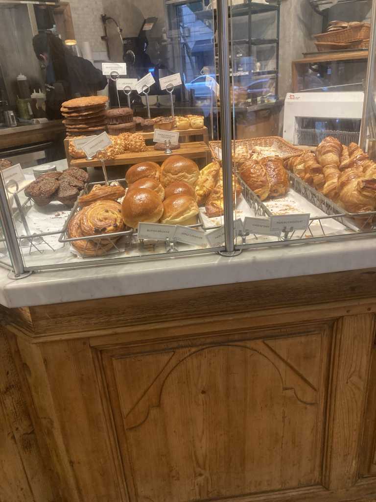 In the midst of running around the Upper East Side’s Museum Mile, I headed off to find a coffee shop. I hop inside of Au Pain Quotidien. I have a hot matcha (even though I’m pretty sure I ordered it iced), and a delicious chocolate croissant while reading a nun mystery novel. I lingered here. It was nice, while the rain drizzled outside, I read and munched, and it was lovely.
