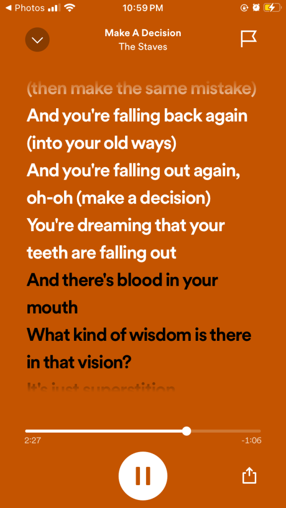 I’ve been listening to All Now, The Staves’ new album, and it’s such a fun vibe for a folk album. If you’re looking for new music, I do recommend it!! Remember when I wrote about my dreams where my teeth kept falling out, there’s a lyric in the new record about it.
