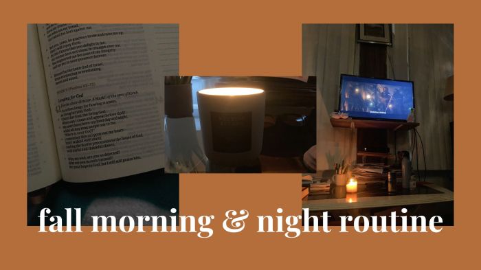 Hello, gentle reader! As we’ve slipped into fall, I’ve gotten the sense that things are temporary. The yellow leaves slowly fall to the ground, the darkness in the morning when the sky is gray and full of clouds, even the soft chill that eventually warms up. Fall makes its way into winter (which I don’t … Continue reading fall morning and night routine
