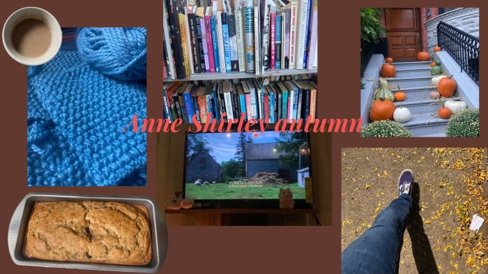 Happy autumn, friends!!! As we get deeper into the autumn season, I figured it would be sweet to celebrate the fall season with a touch of Anne Shirley. This post was inspired by this video by Julia Sullivan. Anne Shirley’s favorite season is indeed fall. After all, she says, “How lucky am I to live … Continue reading Anne shirley autumn