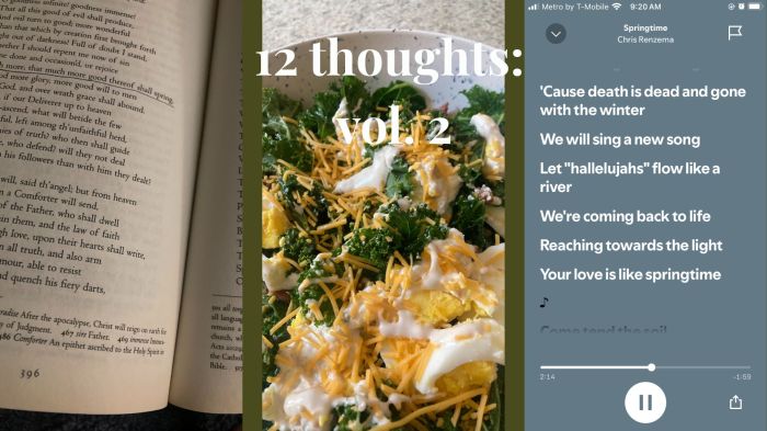 Gentle readers, I hope you are well! April feels like a mixed bag. Dreary rainy days with moments of joy scattered at surprising turns. I, for one, am glad the world is starting to bloom. When it’s dark and cold, you almost forget that spring comes, and then it does, and your heart swells with … Continue reading 12 thoughts: from sermons to spring vol. 2