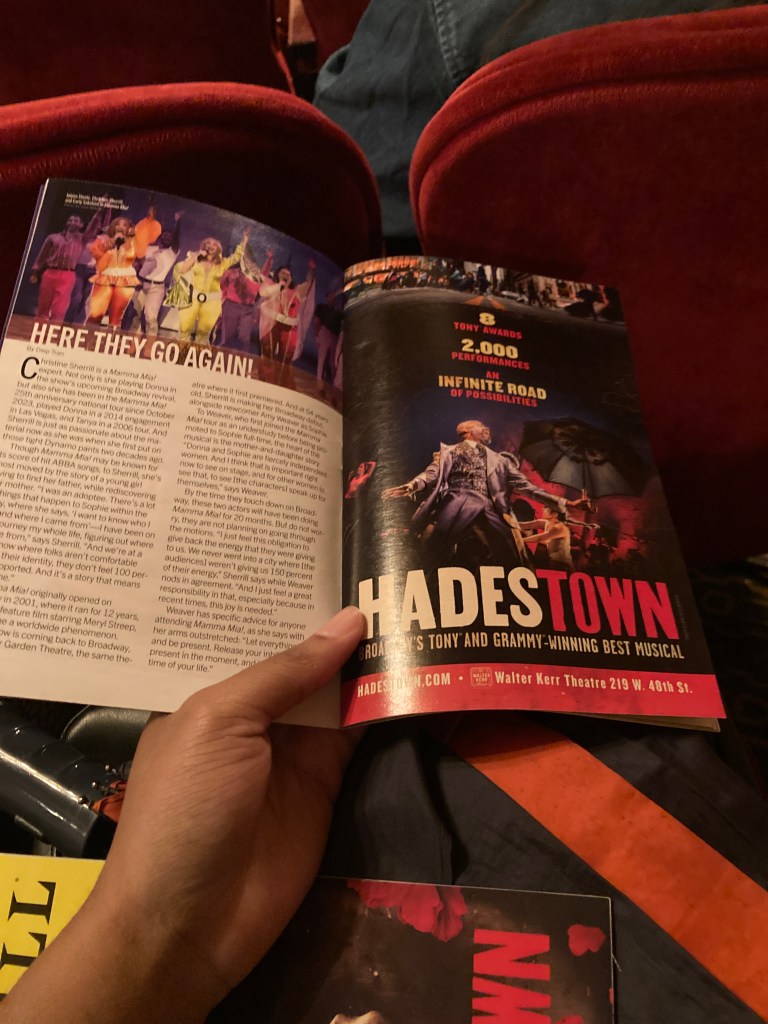 If you’re in New York and you don’t have much planned, I’d insist on you attending a Broadway show. I went to see Hadestown. It’s essentially the myth of Eurdyice and Orpheus. The actors were amazing. It always amazes me to see people my age so successful.