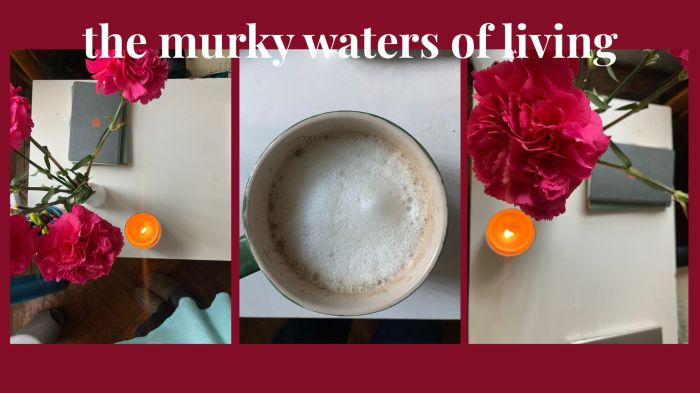 This morning I listened to a podcast on discerning Godβs movements in this season of your life. God has been awful quiet this September. Or have I just not been listening? At the beginning of this year I got a new journal and Iβve been using it to record words Iβve received from God. Depending … Continue reading the murky waters of living π§