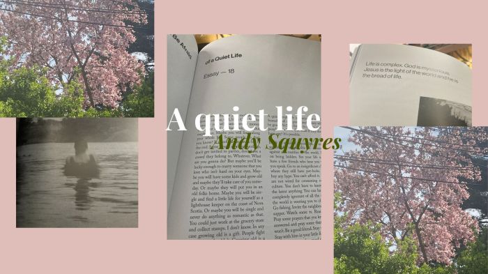 Don’t be afraid of a quiet life. A small sustainable simple life is resistance against the vanities of the world. Plan on being hidden. Set your life up to have a few friends who hear you when you speak. Go to an insignificant church where they still have potlucks. Don’t buy any hype. You can’t … Continue reading a quiet life | quote series